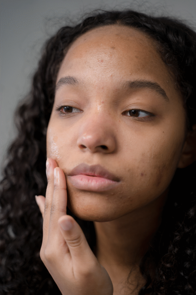 Uneven skin texture or scarring caused by past acne