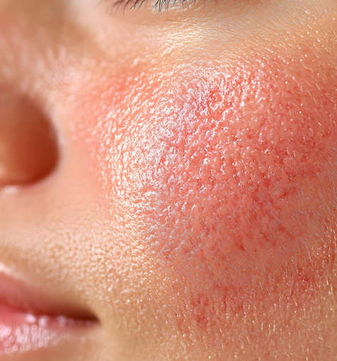 Rosacea: A chronic inflammatory skin condition that causes flushing, visible blood vessels, and bumps